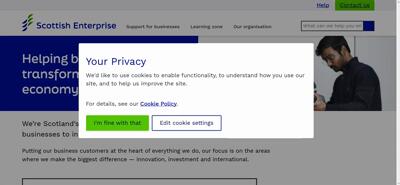| Offenders: https://www.scottish-enterprise.com/cookies/permissions https://www.scottish-enterprise.com/favicon/site.webmanifest?v=0.78.0.0 https://uksouth-0.in.applicationinsights.azure.com//v2/track https://uksouth-0.in.applicationinsights.azure.com//v2/track |