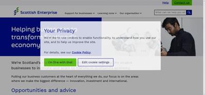 | Offenders: https://www.scottish-enterprise.com/cookies/permissions https://www.scottish-enterprise.com/favicon/site.webmanifest?v=0.110.0.0 https://uksouth-0.in.applicationinsights.azure.com//v2/track https://uksouth-0.in.applicationinsights.azure.com//v2/track |