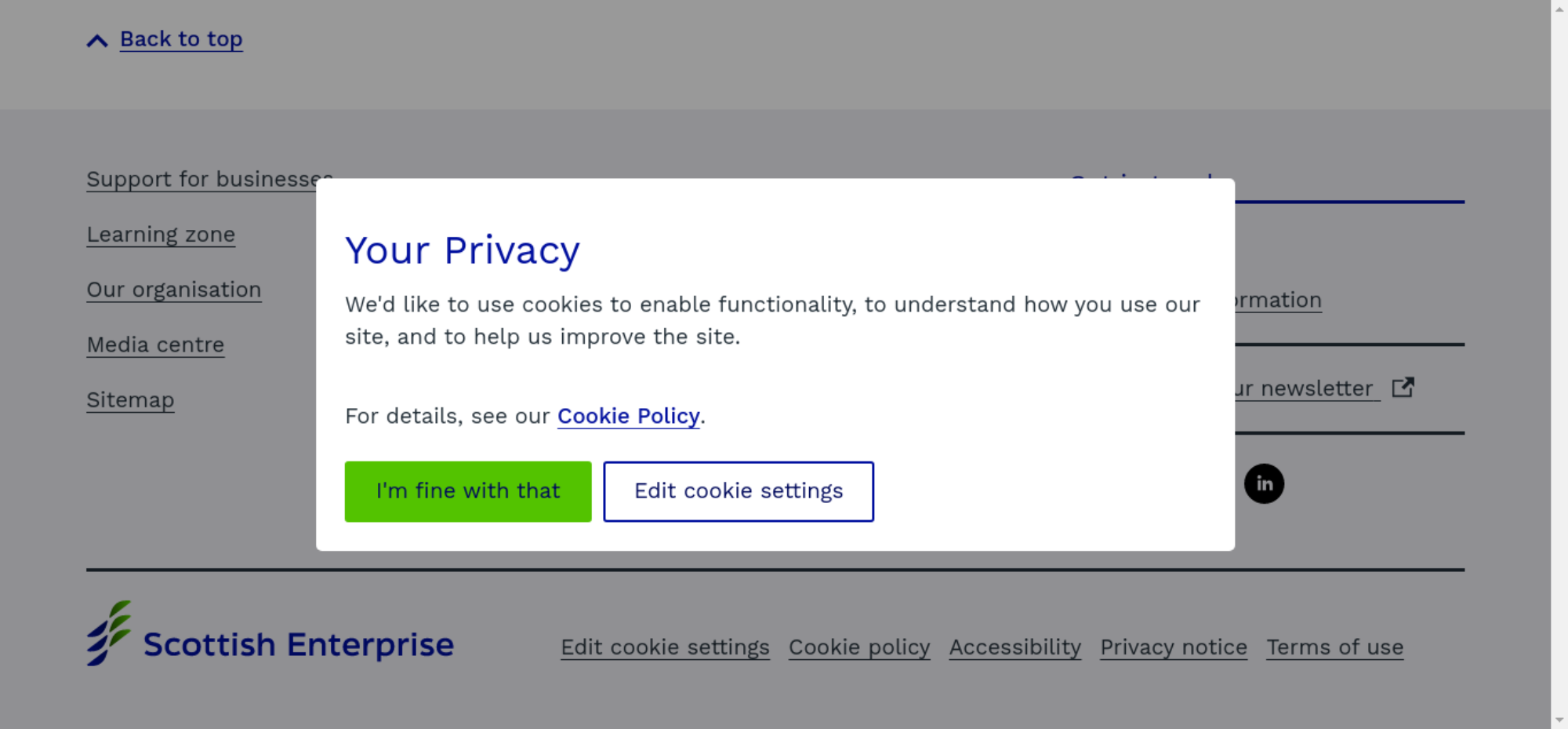 | Offenders: https://www.scottish-enterprise.com/cookies/permissions https://www.scottish-enterprise.com/favicon/site.webmanifest?v=0.200.0.0 https://uksouth-0.in.applicationinsights.azure.com//v2/track https://uksouth-0.in.applicationinsights.azure.com//v2/track |