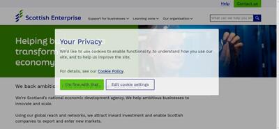 | Offenders: https://www.scottish-enterprise.com/cookies/permissions https://uksouth-0.in.applicationinsights.azure.com//v2/track https://www.scottish-enterprise.com/favicon/site.webmanifest?v=0.218.0.0 |