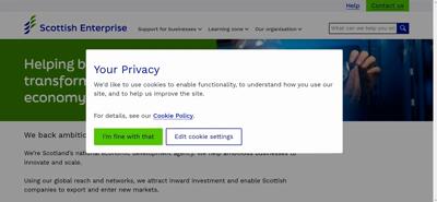 | Offenders: https://www.scottish-enterprise.com/cookies/permissions https://uksouth-0.in.applicationinsights.azure.com//v2/track https://www.scottish-enterprise.com/favicon/site.webmanifest?v=0.218.0.0 |